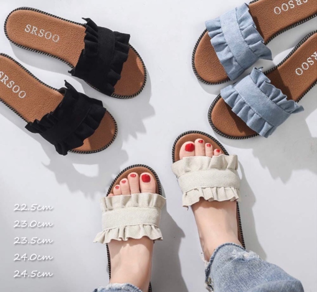 フェミニンなフリルが女性らしく大人可愛いおしゃれスリッパ