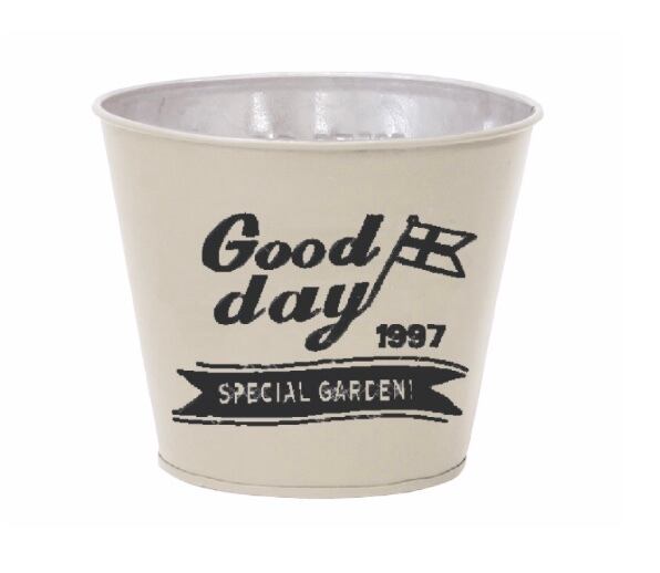これ一つでオシャレなお庭に☆ サイズ:φ174×145mm 素材:ブリキ・ライナー(PVC) ※ライナーが付属します ※底穴なし